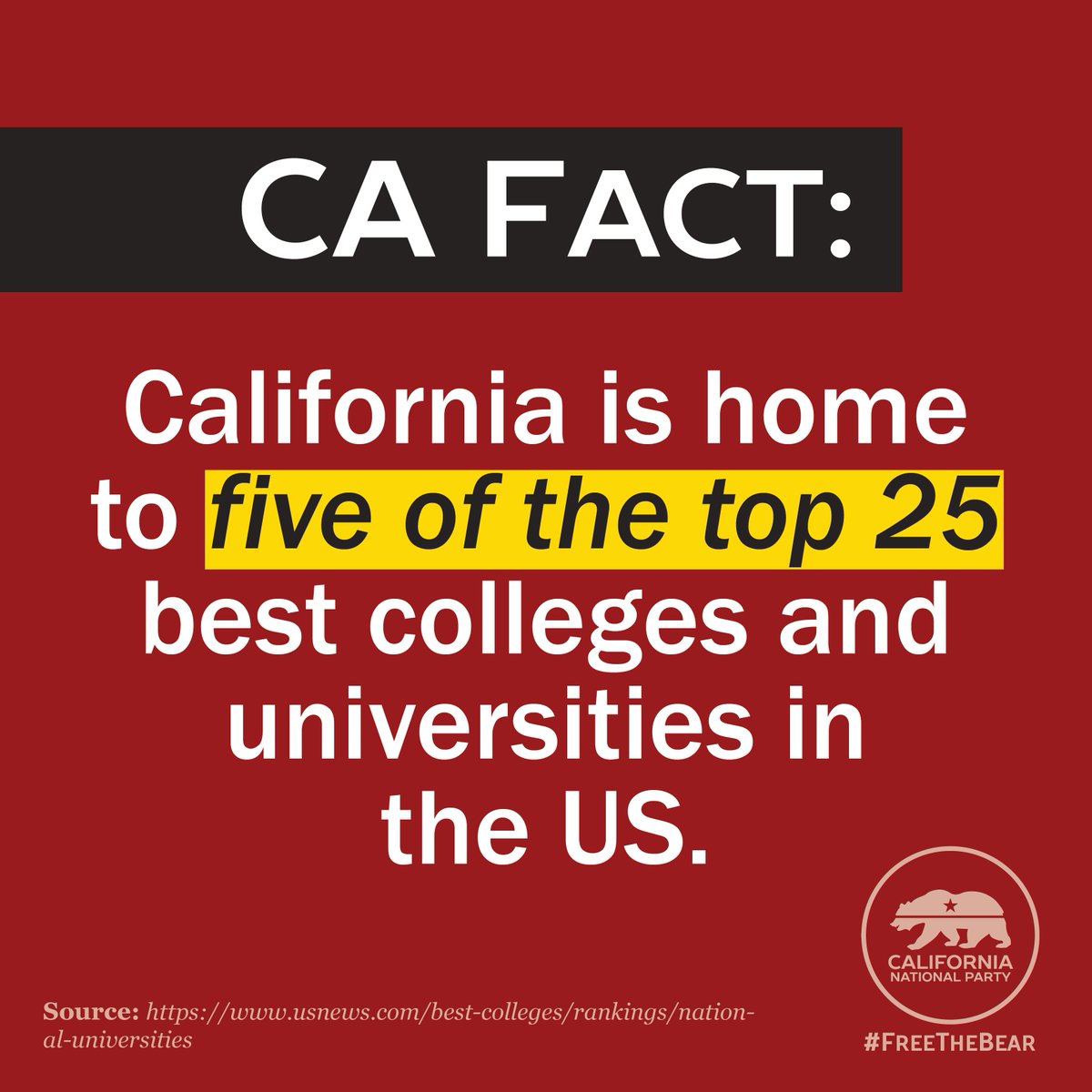 We are home to 5 of the top 25 best schools in the US: @Stanford, @Caltech, @UCBerkeley, @USC & @UCLA #FreeTheBear #CalExit #edu #californiapic.twitter.com/V2z6BBb6bY