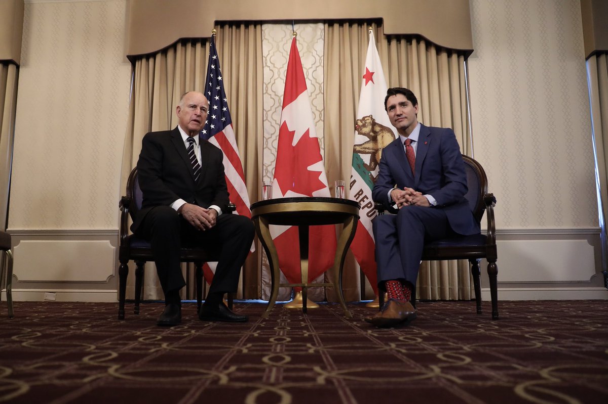 Morning meeting in San Francisco with @JerryBrownGov, focused on trade, renewable energy & our shared commitment to address climate change.pic.twitter.com/tJQDo1AlRl