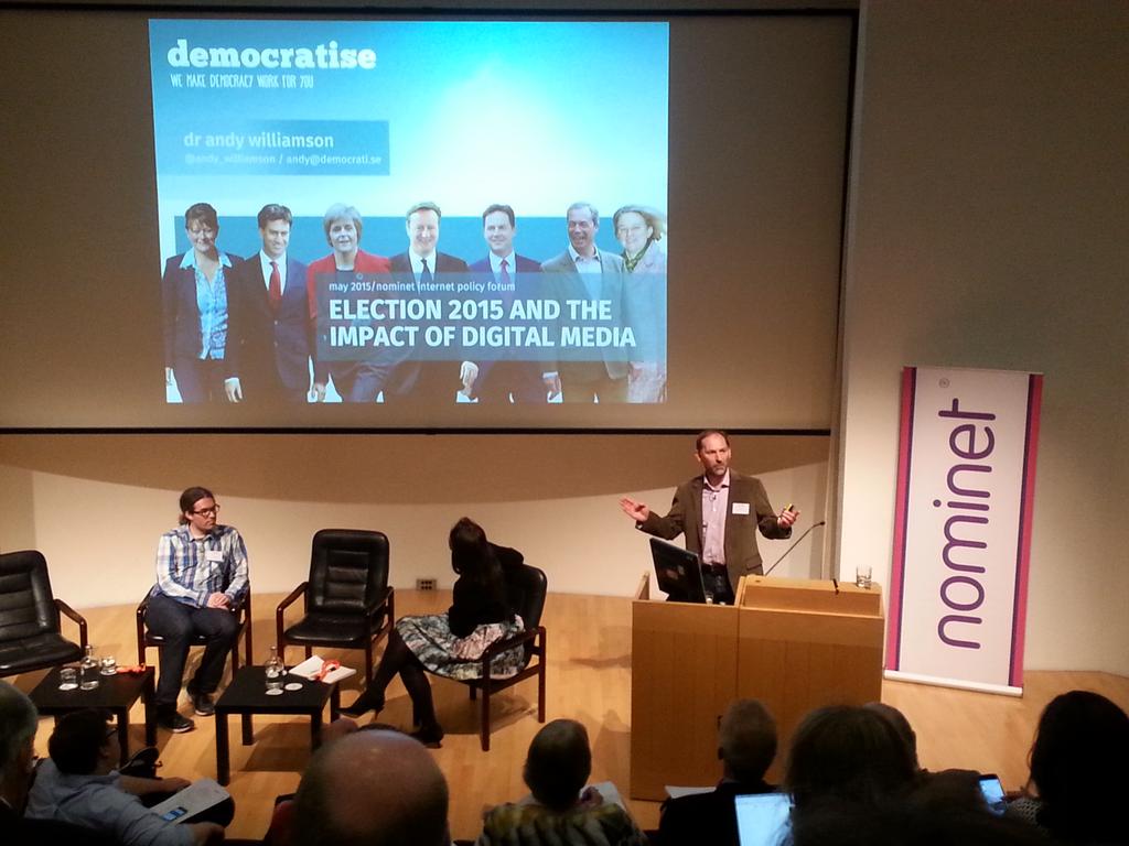 "Welcome to the echo chamber". Realities of #socialmedia in #GE2015 campaigns from @andy_williamson at #Nominetpfpic.twitter.com/eK73dvXu7c