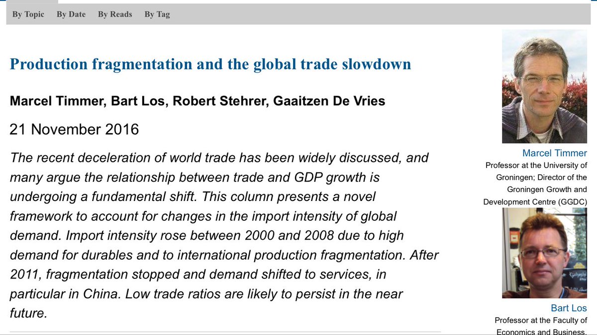 What caused the trade slow down? New calculations • by Timmer et al • http://voxeu.org/article/production-fragmentation-and-global-trade-slowdown …