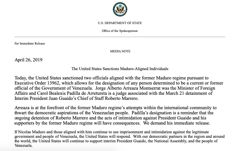 @StateDept on the new#Venezuela sanctions.pic.twitter.com/PYMYOlWcQu