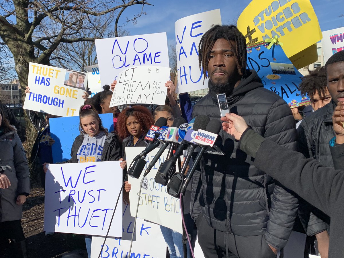 #LincolnParkHighSchool walk out to protest firing of principal & asst principal.@ChiPubSchools says they were fired over “multiple allegations of serious misconduct”. Varsity b-ball team also suspended for the year.@WBBMNewsradiopic.twitter.com/JheEOdJjRh