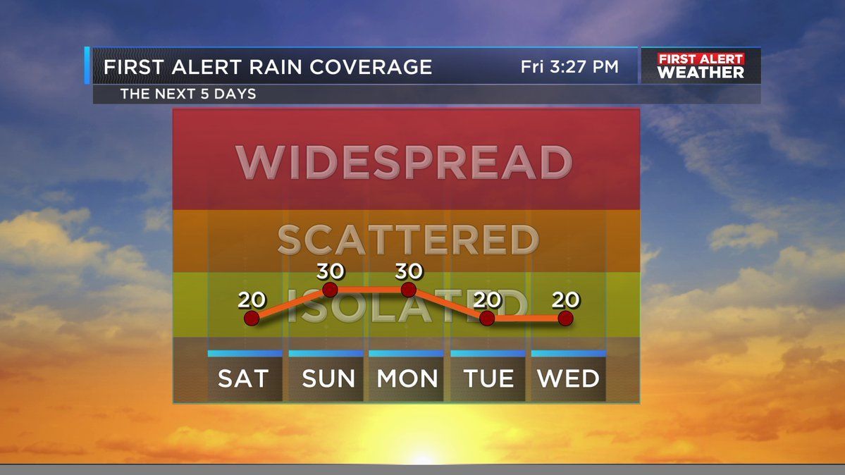 FIRST ALERT: Increasing chance of rain and storms for the remainder of the weekend