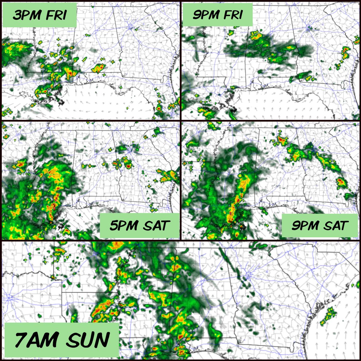 Most of tomorrow will be dry. Expect a better chance for rain and storms Sunday with more widespread thunderstorms on Monday and Tuesday.pic.twitter.com/MuJId6yjts