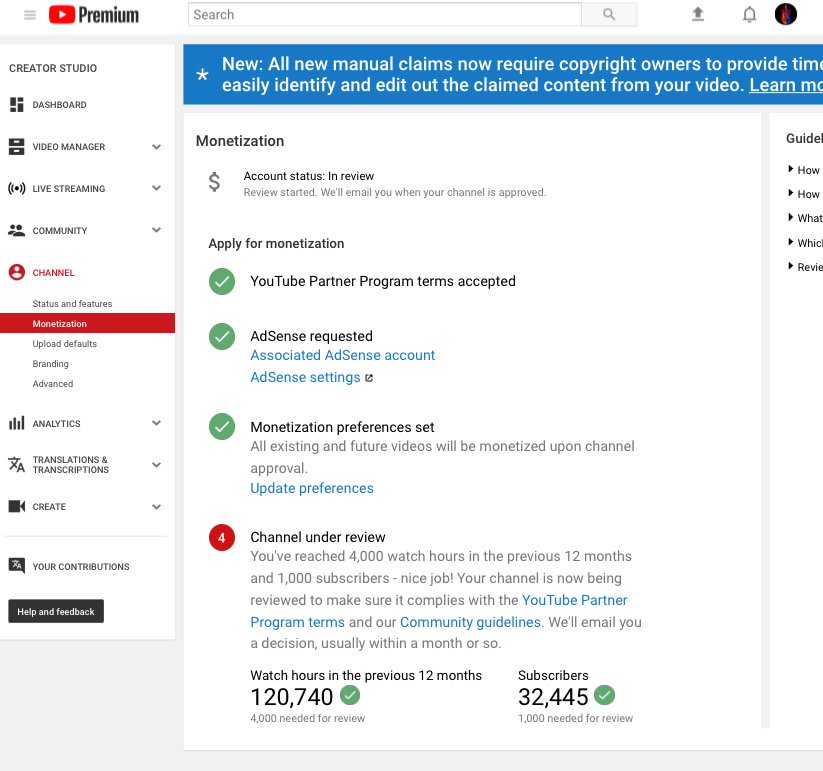 Appreciate the screenshot. Looks like your channel is still in review. We understand it's taking longer to process all the applications as we're reviewing every request manually. We're on track to roll out the final decisions. Hopefully you won't have to wait much longer.