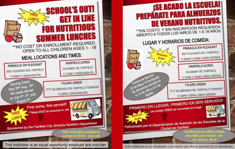 Fairfield City Schools offering students free summer lunches http://bit.ly/2VeLncL pic.twitter.com/PoVz3CwTxY
