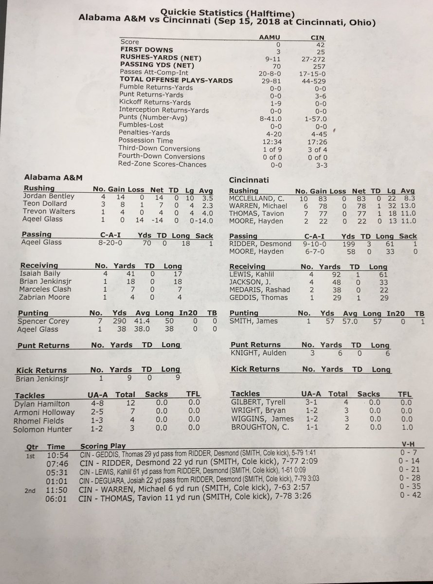 If there were any doubts that redshirt freshman Desmond Ridder could pass, he dispelled them in Cincinnati's record-breaking 63-7 win over Alabama A&M. http://bit.ly/2xk37tu pic.twitter.com/ebXzKUCWUH
