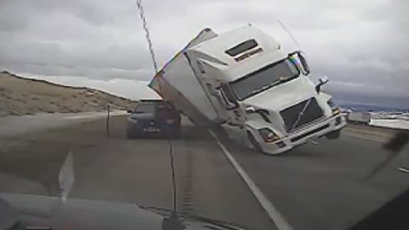 Video shows how wind slammed semitrailer onto police cruiser http://bit.ly/2kVlSMV pic.twitter.com/Bg5GMXeqbz