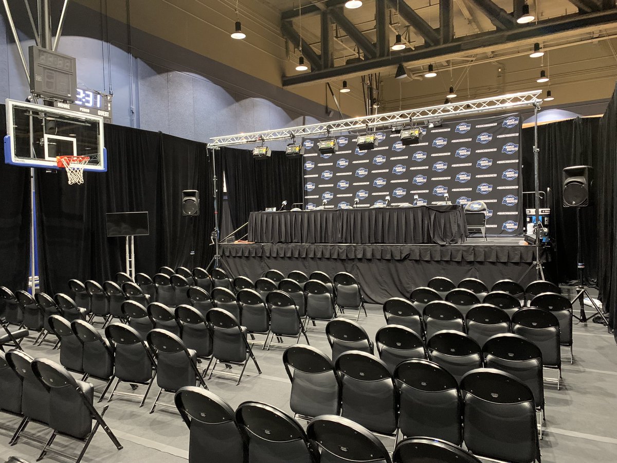 Interview podium and media room here inside the Chase Center for the 2022 NCAA Tournament West Regional.