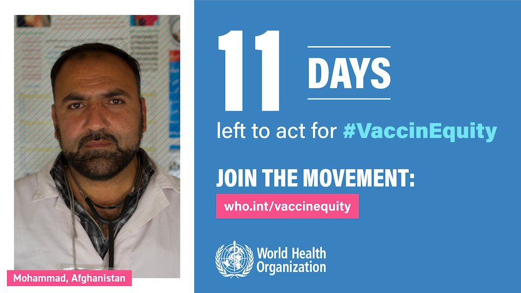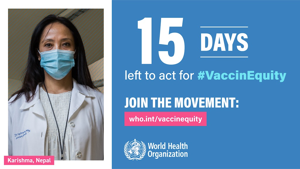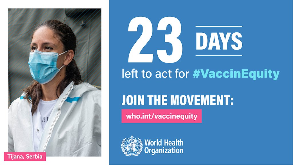 People around the world—including the health workers who have carried us through this crisis on their backs—are counting on leaders to do what is right & smart at this pivotal moment. Add your voice! Join the call for #VaccinEquity - only 1⃣ day left!: 👉http://who.int/vaccinequity pic.twitter.com/Fn6CSR50Vc