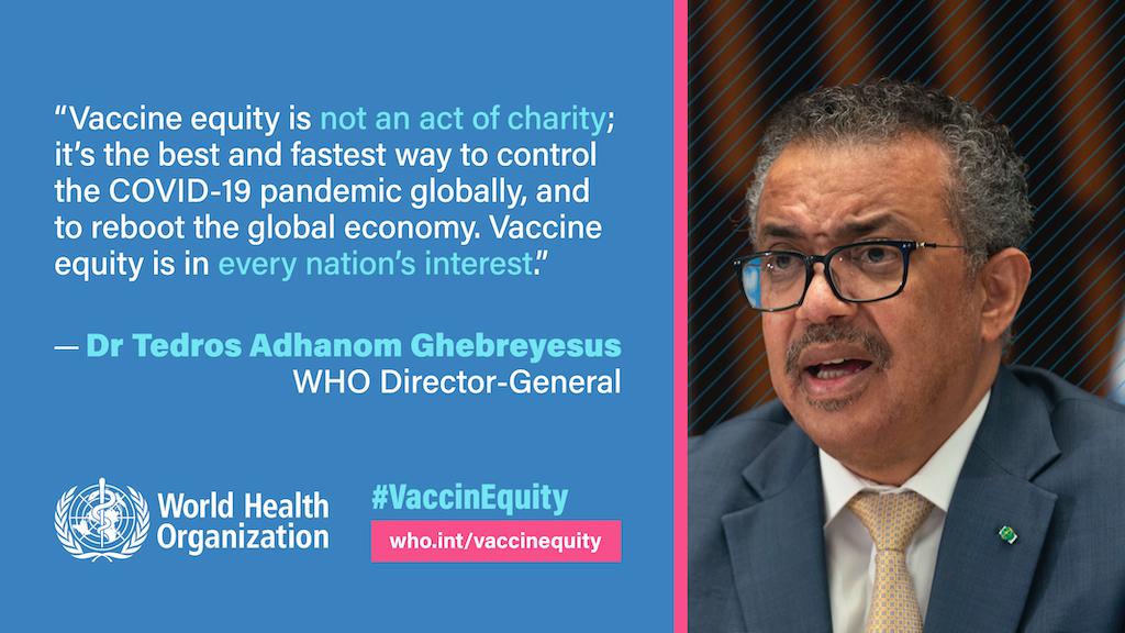 On day 💯 of the #VaccinEquity campaign, we continue to call for vaccines to be equitably produced and distributed. We won’t stop until all essential workers and at-risk populations in all countries are vaccinated! 👉 http://who.int/vaccinequity pic.twitter.com/hOHnEmLbhw