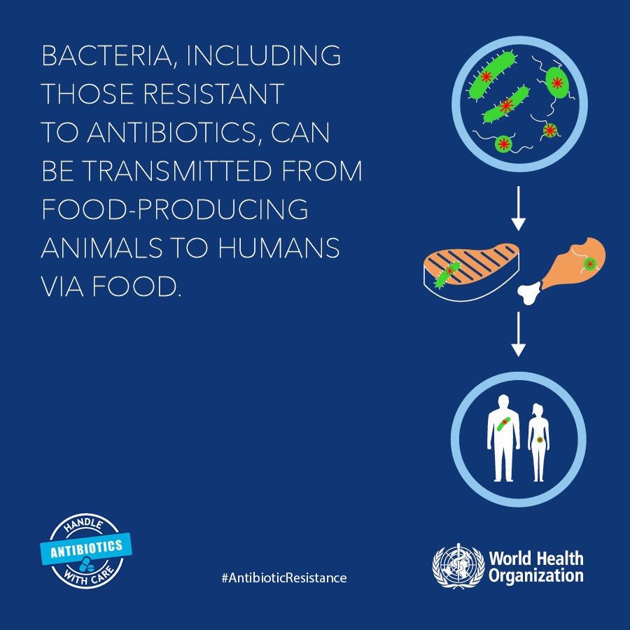 #antibiotics, can be transmitted from food-producing animals to humans via food#AntibioticResistancepic.twitter.com/vCho4l6J5b