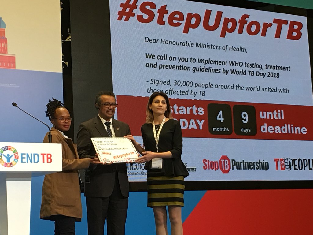 "My brother nearly lost his life to TB. I know the suffering, count me in"–@DrTedros received the #StepUpForTB petition asking Ministers of Health to implement WHO testing, treatment & prevention guidelines by #WorldTBDay 2018 #EndTBpic.twitter.com/ZjZyDxLJ40