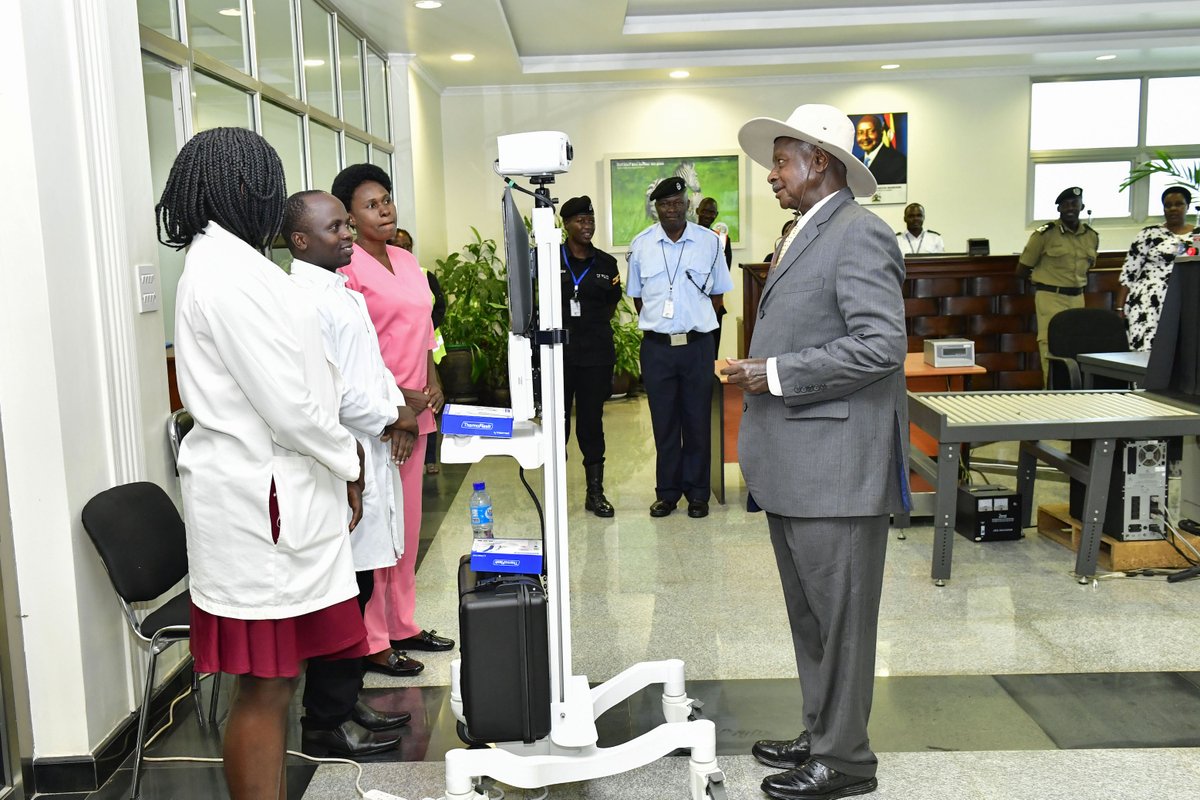 @KagutaMuseveni undergoes screening for#Coronavirus at Entebbe International Airport, this morning as he arrived from Luanda, Angola. The President also assessed and appreciated the effectiveness of the screening equipment and the medical personnel.pic.twitter.com/oQFGdiqQyo