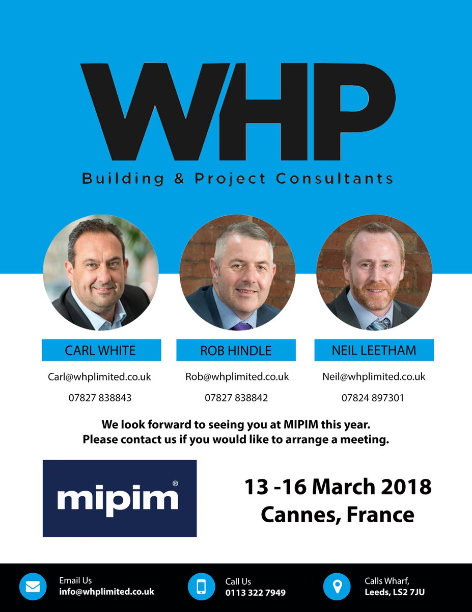 The WHP team will be attending MIPIM in Cannes from 13-16th March & they're looking forward to getting together with other members of our industry. To arrange a meeting with Carl, Rob & Neil, call them on 0113 322 7949 or email Rob@whplimited.co.uk