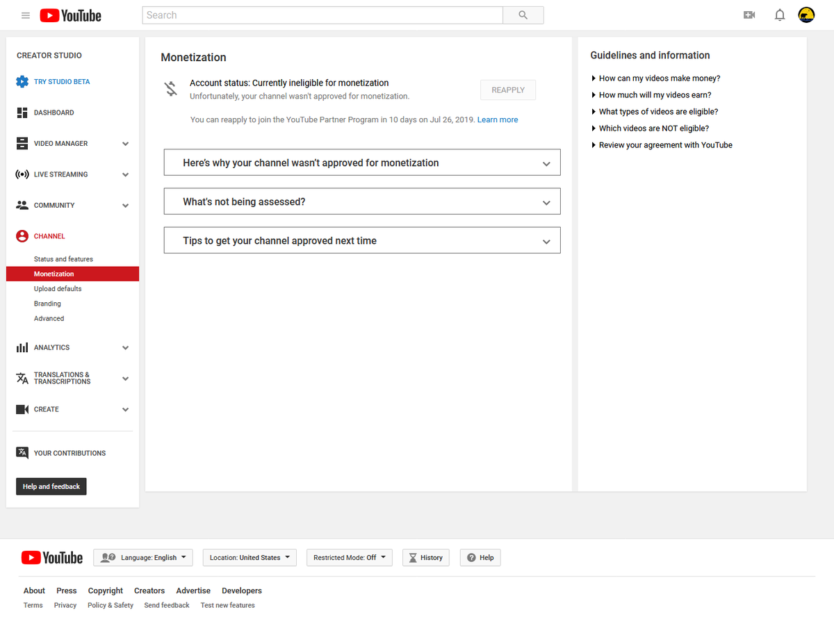 We'd like to help. Mind sharing a screenshot of the monetization page for us to take a look: https://yt.be/help/acmo ? Keep us posted.