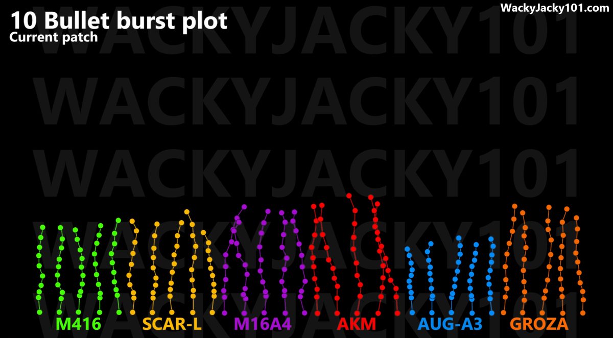 Here is also an image showing the 10 bullet burst behavior of all the current assault rifles. Note that the jump between the first and the second bullet can be lowered a bit using a vertical grip, but you will get punished on horizontal recoilpic.twitter.com/KqJbGiJTE0