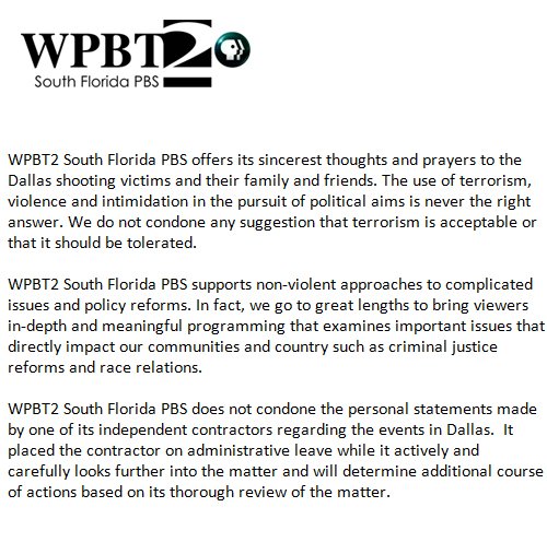 Admin leave my ass. A white person saying that would have been fired ASAP. Liberal hypocrisy (it's PBS after all).