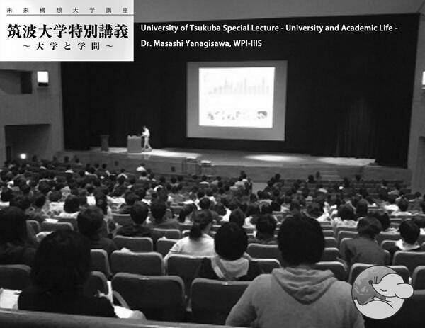 新入生向けのレクチャーシリーズで、柳沢先生が筑波大学特別講義で「睡眠・覚醒の謎に挑む」というテーマで発表しました。UT Special Lecture for 1st year students w/Dr. Yanagisawa.pic.twitter.com/geKvjmOQU9