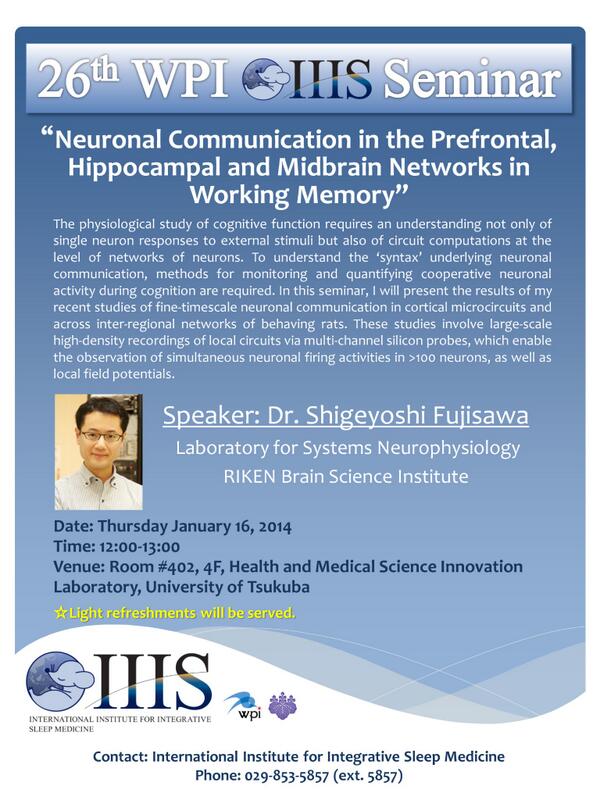 Dr. Shigeyoshi Fujisawa from RIKEN will be dropping by for the 26th WPI-IIIS Seminar on Thurs 1/16 (12-1pm)pic.twitter.com/HT4YIXY8Pi