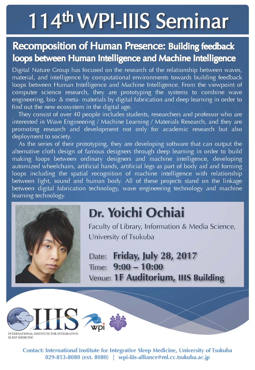 今週末7月28日(金)9:00~、IIISセミナーを開催いたします。ゲストは"現代の魔法使い"と呼ばれる落合陽一さん。セミナ―は朝の9時からと早い時間帯に開催されますが、一緒に熱いディスカッションをしましょう!pic.twitter.com/zDsuOCC3Qs