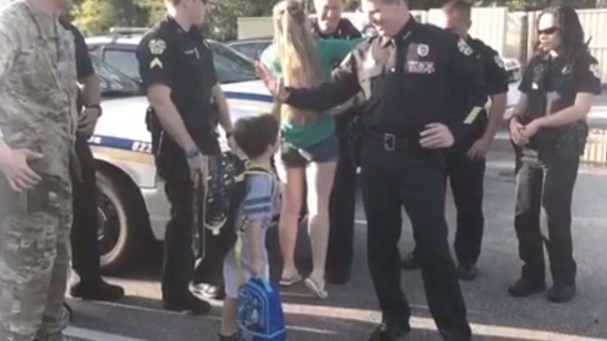 RUFF ARREST: K9s, handlers & victim’s parents helping catch an accused creeper. Police believe he followed teen from her dance studio to her home & watched her shower. Dad gave chase and cornered him.