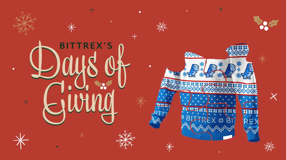 We're celebrating #NationalUglySweaterDay on Friday Dec 20! Each day we'll unveil a piece of the#Bittrex custom sweater design. Simply retweet this tweet for your chance to win. We'll select 15 random winners from this tweet.