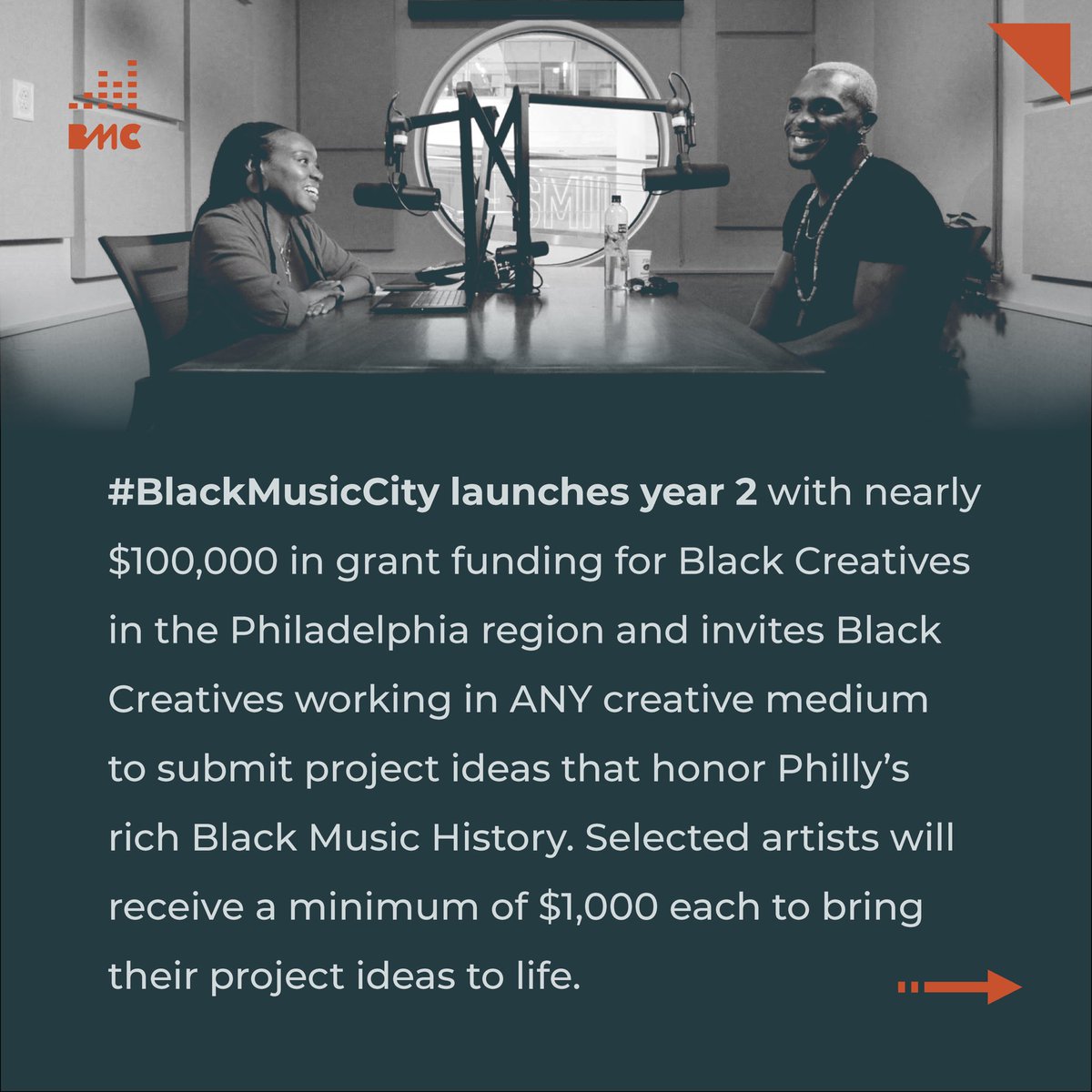#BlackMusicCity awarding $100,000 in grant funding to a diverse group of Black Creatives (ANY MEDIUM) in the PHILLY Tristate area (PA, NJ, DE).@wxpnfm@wrtimusic@recphilly_ Apply Today!! December 17 application deadline. More details here -> http://blackmusiccity.com pic.twitter.com/N0GgXFMNcg