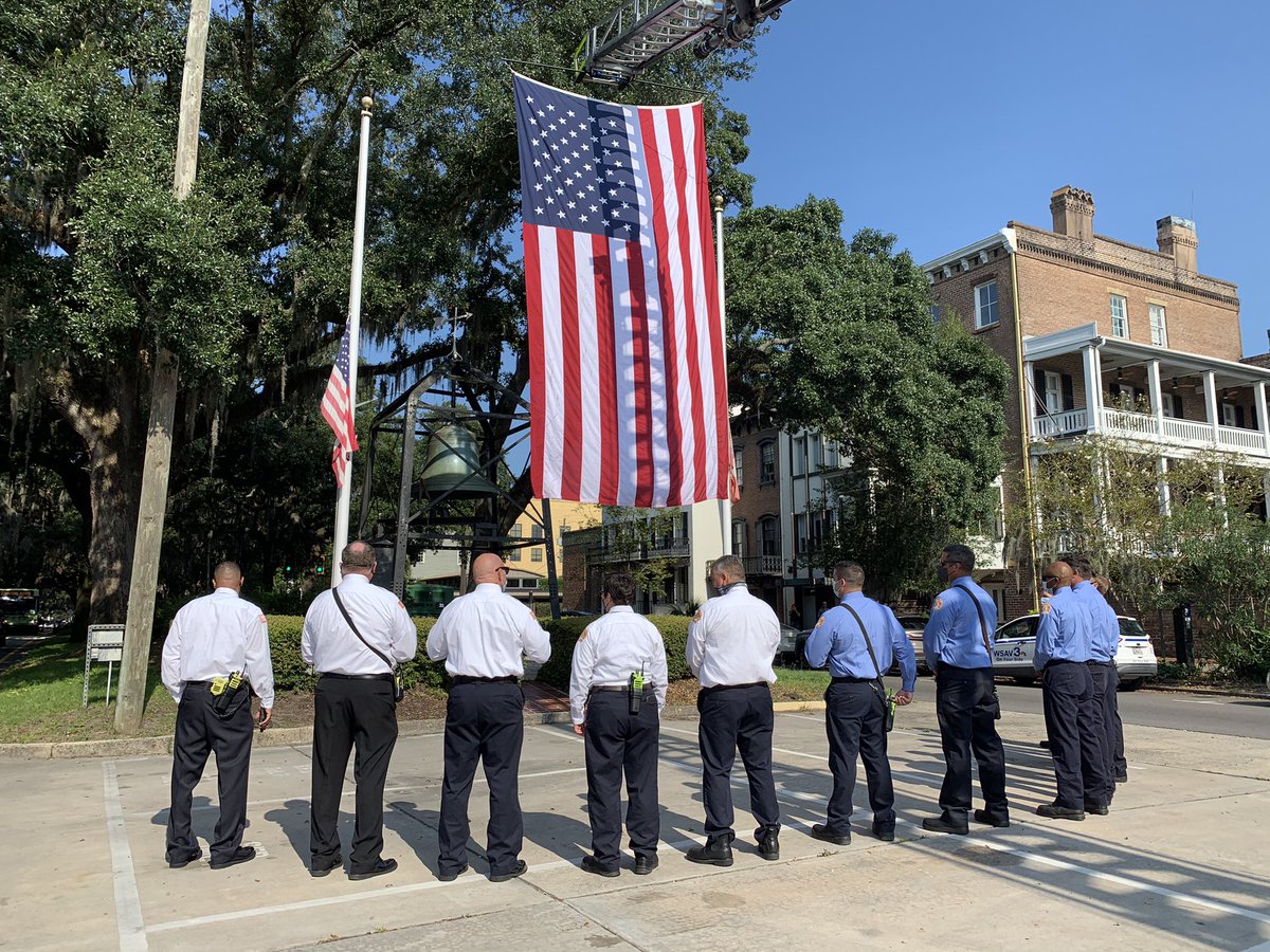 At Savannah Fire Headquarters where firefighters are commemorating the 20th anniversary of 9/11. There will be a moment of silence at 10:28am - the time the North Tower collapsed.