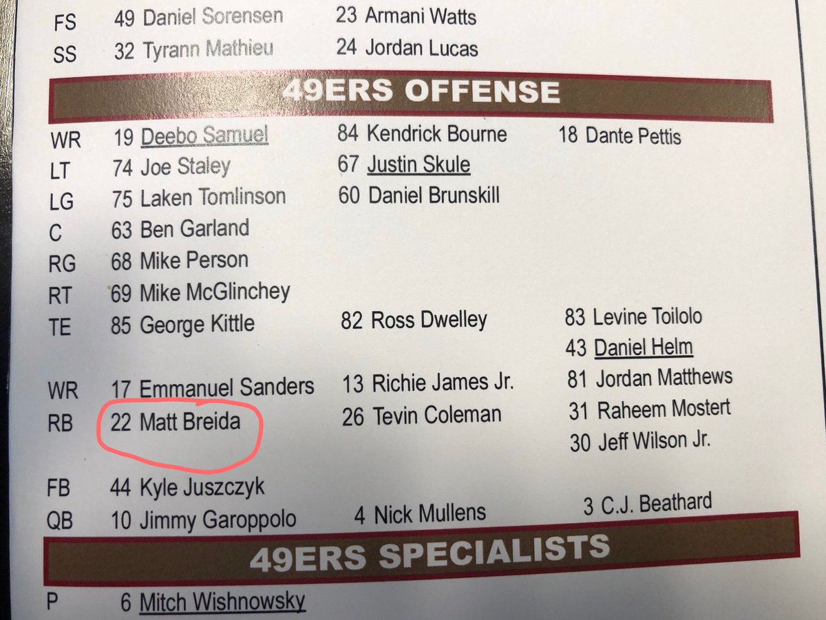 @GregTalbott spotting this on the@49ers depth chart. Take a look at RB1