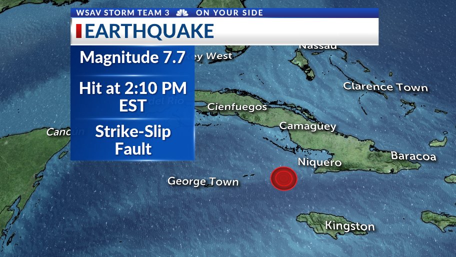 A magnitude 7.7 earthquake happened in the Caribbean near Jamaica, Cuba, & Cayman Isl. Back here at home...while we didn't feel the