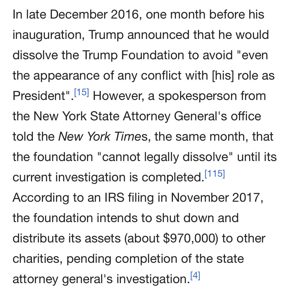 Hilarious - when do they get to Clinton Foundation? NYAG, your bias is showing