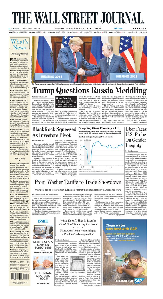 @wsj took great pride in the shear banality of today's headline "Trump Questions Russia Meddling." I view it as a disappointment although the article below was well done.Thanks. Twitter will use this to make your timeline better. UndoUndo