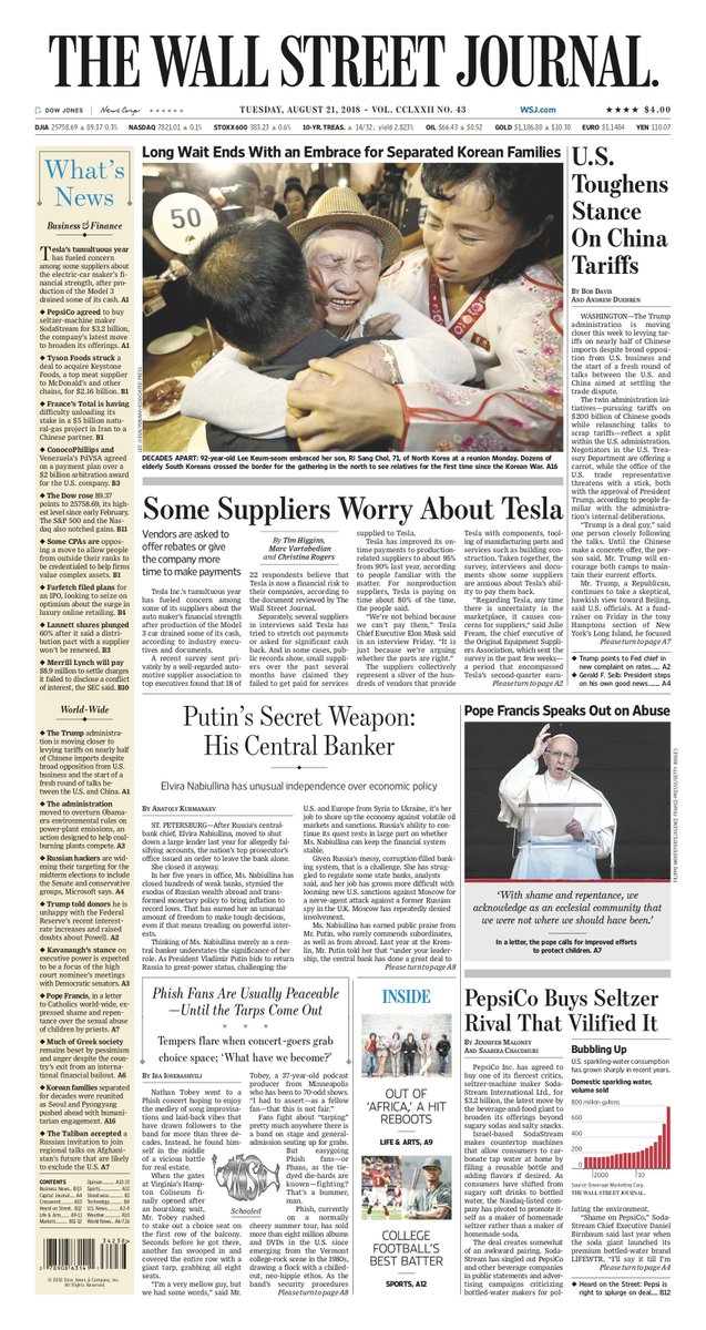 That front page is ridiculous. Where’s the BIG headline to go with the picture?? My God these people have been reunited with family members they haven’t seen for a bazillion years. The first thing I can see and read is about Tesla. WSJ you suck.