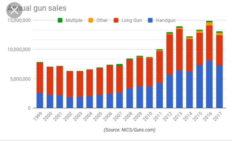One would be clueless to think that they wouldn’t go down given the prior occupant of the WH did more for AR15 and other gun sales than any prior president.pic.twitter.com/EUmEB3nIZP