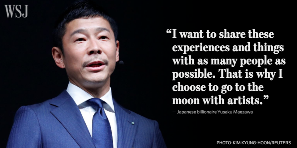 Japanese billionaire Yusaku Maezawa is paying to blast off from earth in 2023, circle the moon and return https://on.wsj.com/2D631f1 pic.twitter.com/1hyeI1VcHw