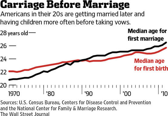 @WSJ good lord! Median age for forst marriage was about 21 and median age for first bundle of babbling was 22 in 1970?! Hippie love, maaaaan