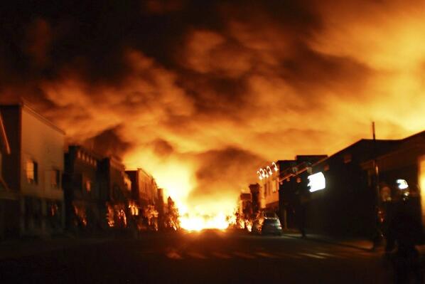 Apocalyptic: “@WSJ: New photo shows power of train explosion, sky alit above town in Quebec. http://on.wsj.com/1a4mELN pic.twitter.com/6pUK9x1Ep2”