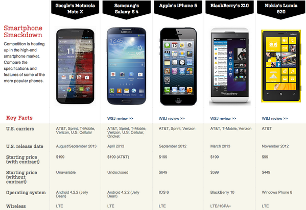 “@WSJ: A side-by-side comparison of the Moto X vs. the iPhone 5, the Galaxy S 4 and others: http://on.wsj.com/15yNV7m pic.twitter.com/OOtMrAnkOl”