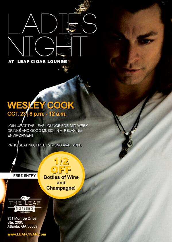@WSJ Ladies Night 1/2 off bottles of wine & champagne 2night w/ Wesley Cookpic.twitter.com/LWpqJxcaKR