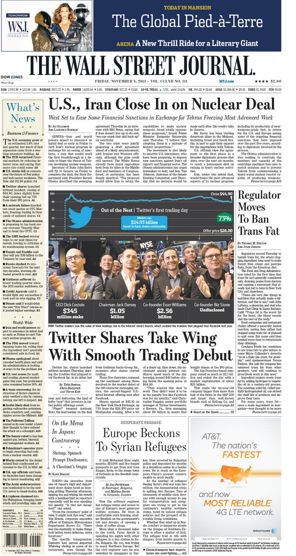 “@WSJ: Check out our front page: pic.twitter.com/HDiq4pJlHE” #twitter #NYSE