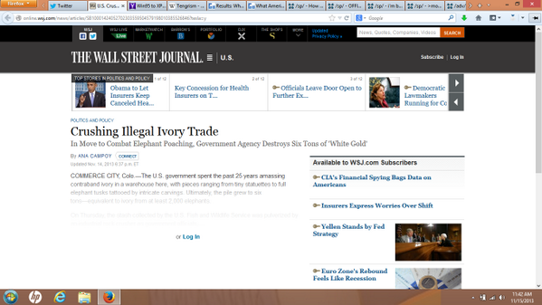 @WSJ: The U.S. crushes 6 tons of ivory as part of campaign to combat elephant poaching. http://on.wsj.com/1aWf2hM ”Thanks. Twitter will use this to make your timeline better. UndoUndo