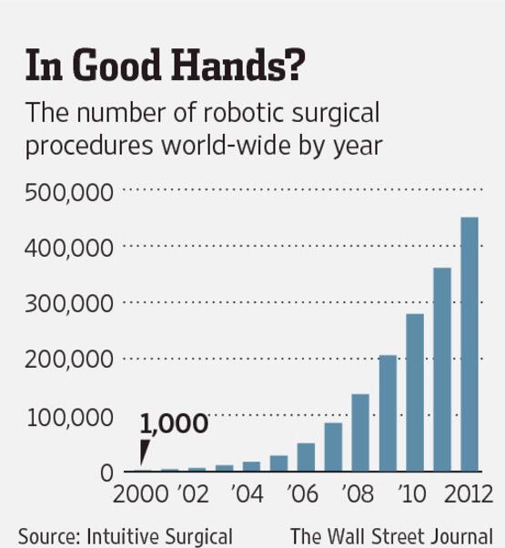 “@WSJ: In 2000, there were only 1,000 robotic surgeries world-wide. Last year: 450,000. http://on.wsj.com/1aN4gEO pic.twitter.com/JUzDxuL2JJ”