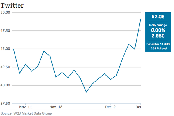@WSJ: Shares of Twitter back above $50, setting new record. http://on.wsj.com/1gmtClh$TWTR pic.twitter.com/89QP2Sz6cQ”