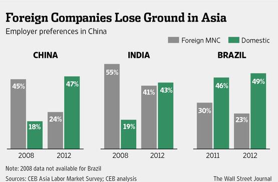 Foreign firms in China are battling local rivals for top workers. http://on.wsj.com/1daE1ev pic.twitter.com/eQ0jEazFbQ RT