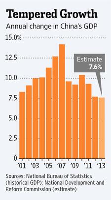 “China's economy likely grew 7.6% for 2013... http://on.wsj.com/1g59vW1 pic.twitter.com/3ZEPAGw8uy” via