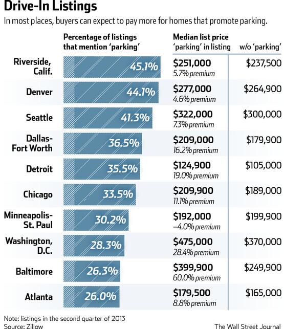 28% premium in DC. “@WSJ: In Baltimore, homes for sale w/parking listed for 60% more than w/o http://on.wsj.com/1gWvYoD pic.twitter.com/3sD0m1xqGC”