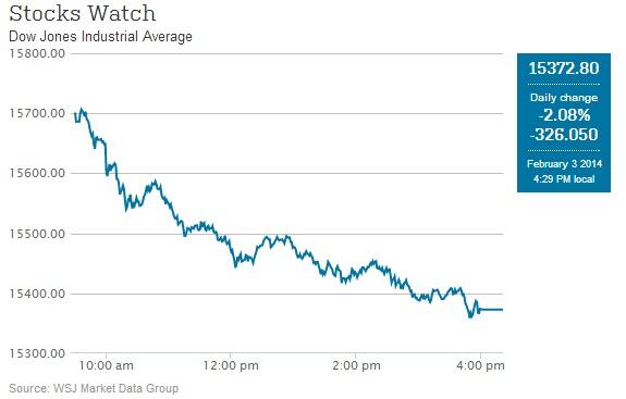 @WSJ: The Dow Jones Industrial Average made its seventh triple-digit drop this year: http://on.wsj.com/1fC751P pic.twitter.com/TSocMcLOyo”