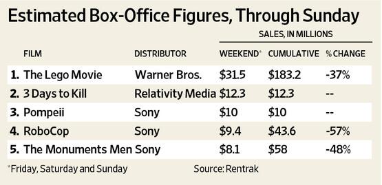 “@WSJ: The Lego Movie was No. 1 at the box office for the third weekend in a row: http://on.wsj.com/1cgxG0h pic.twitter.com/kHmBY7GPYy”wow