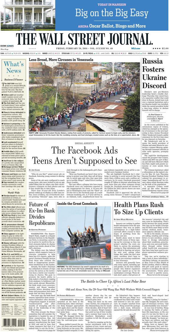 Nuevamente en portada del WSJ "Menos pan, más circos en Venezuela" “@WSJ: Here are the stories that made #WSJPage1: pic.twitter.com/FgqFa0Vzi2”